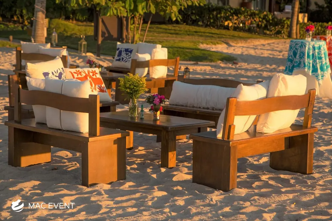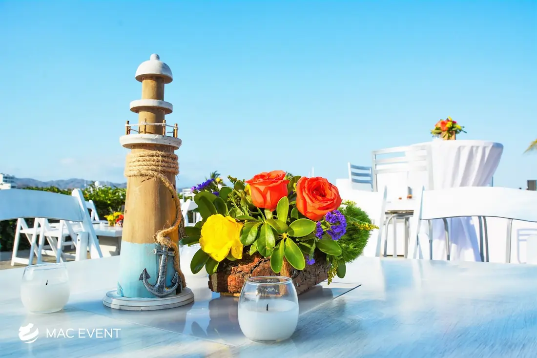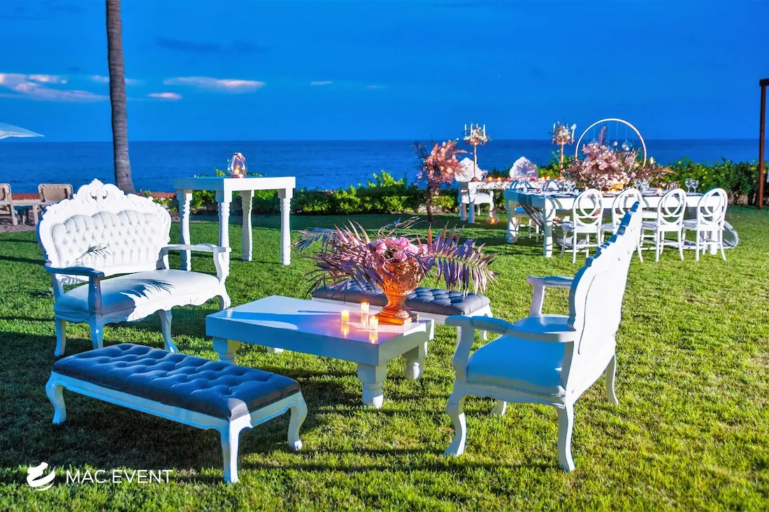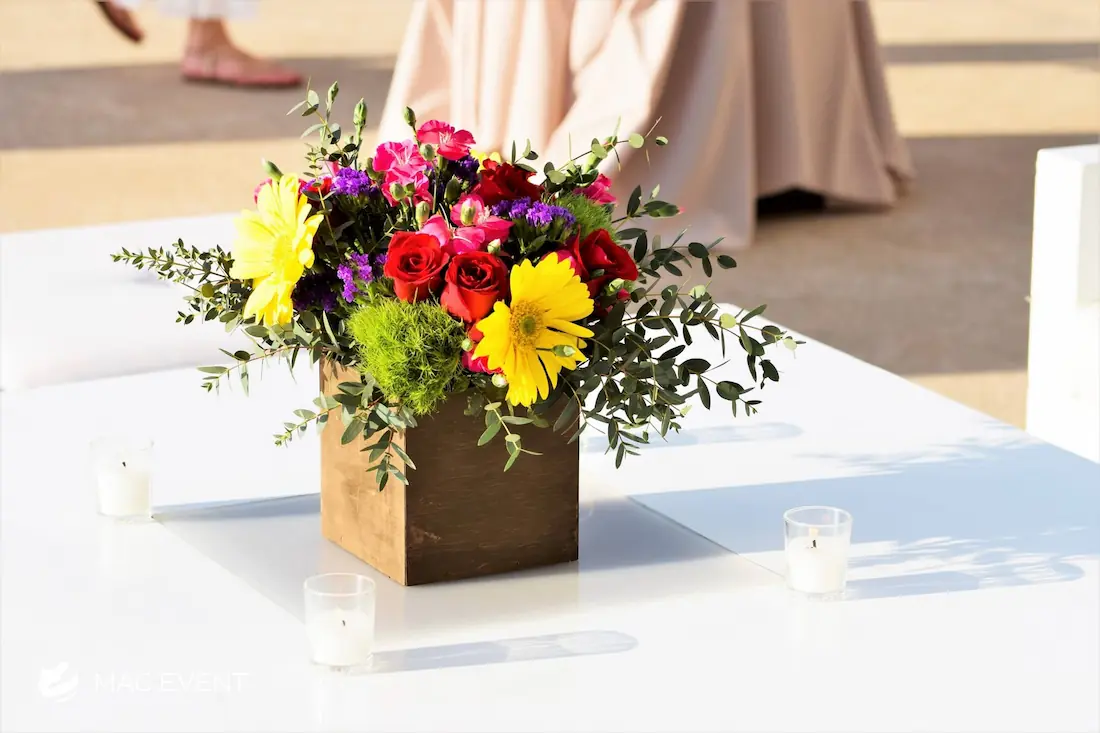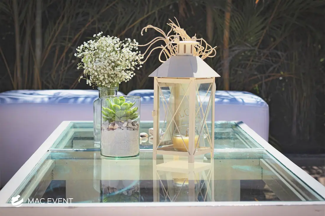 Enhance your lounge areas with our coffee table centerpieces, perfect for weddings and events in Loreto. These stylish centerpieces add a touch of elegance and sophistication to your coffee tables.
