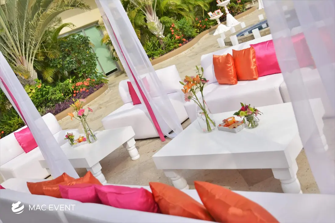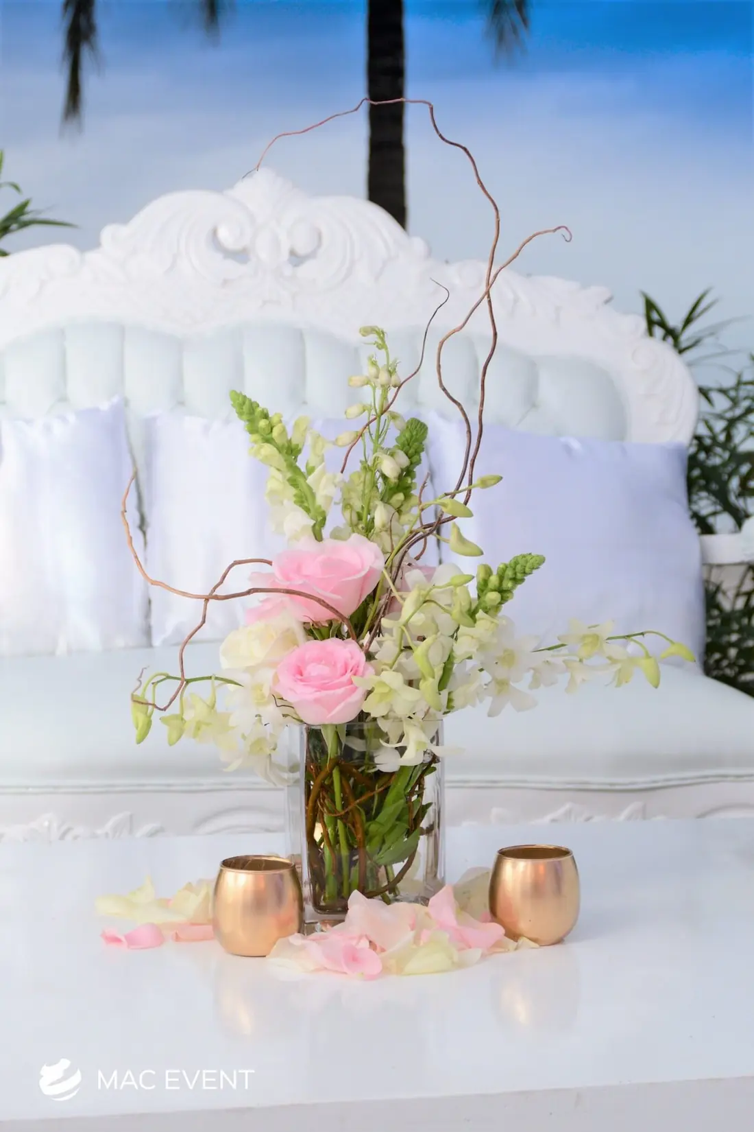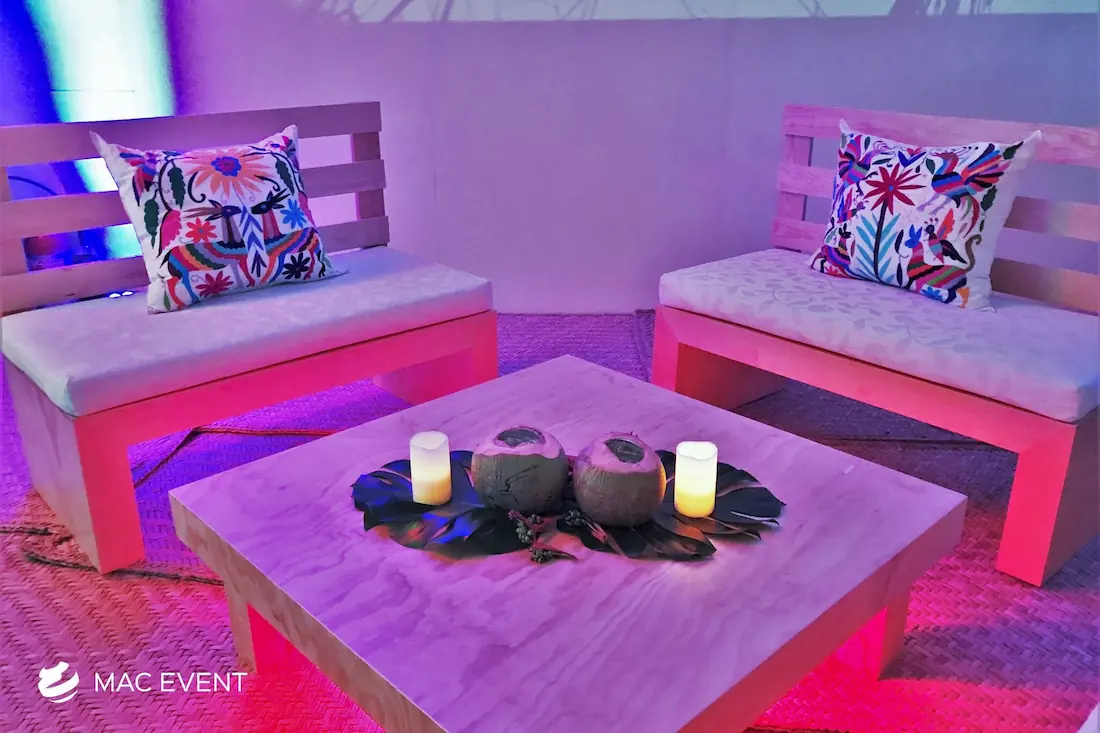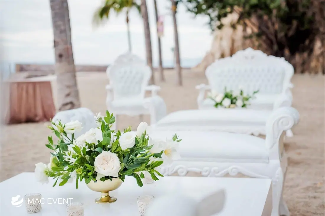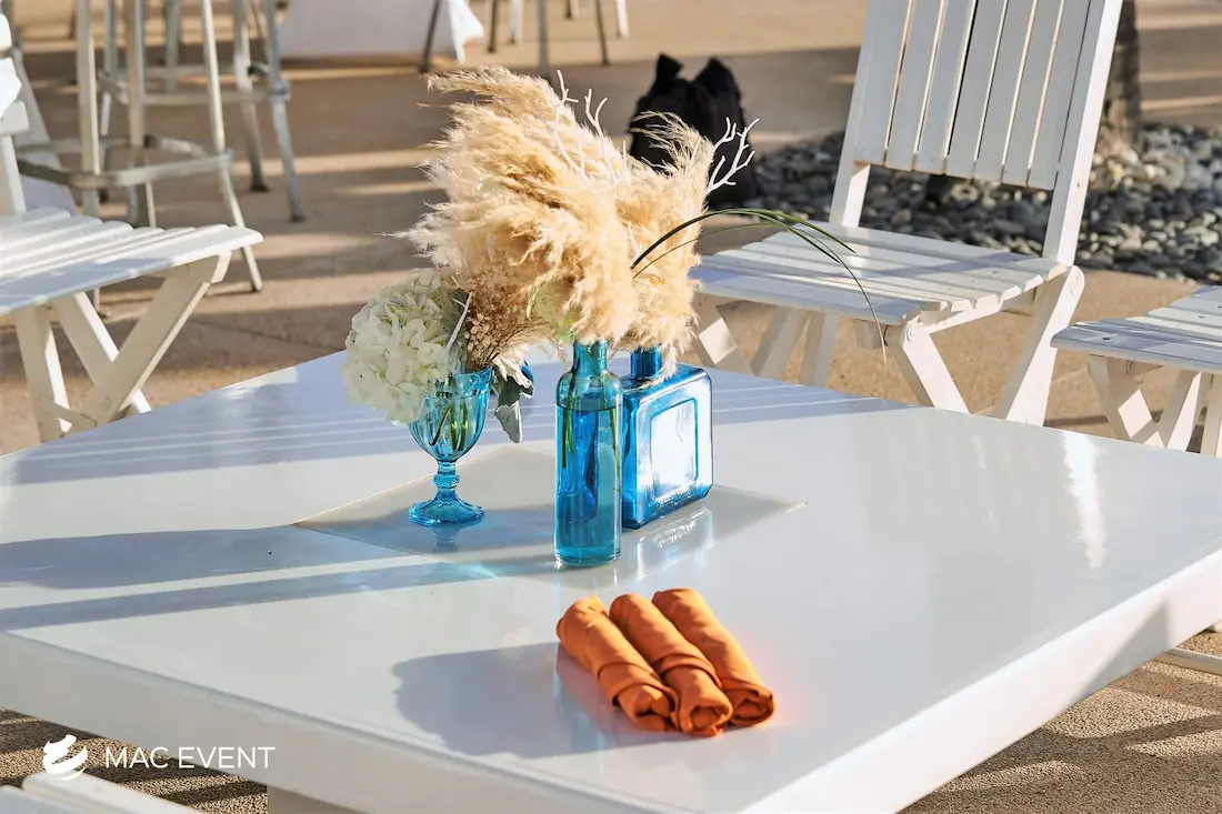 Enhance your lounge areas with our coffee table centerpieces, perfect for weddings and events in Loreto. These stylish centerpieces add a touch of elegance and sophistication to your coffee tables.